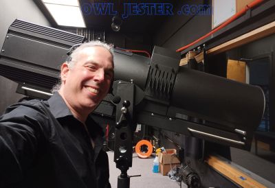 Dr. Owl focusing lights at the Cornish Playhouse. |