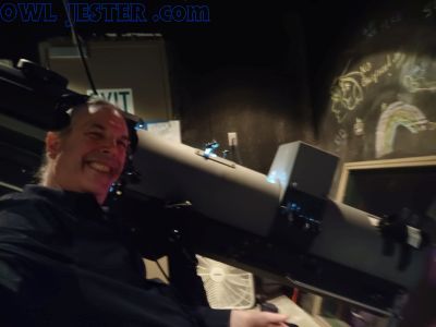 Dr. Owl being the Head Technician for the Cornish Alhadeff Studio Theater at the Seattle Center. |